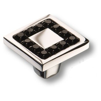 Ручка кнопка 0771-005-2 BLACK, материал Латунь, отделка Хром Кристаллы Swarovski, 30*30*22 мм